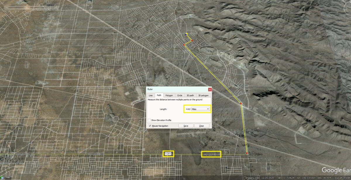 SouthWest Corner: 31°44’23.44″N,106° 1’34.98″W