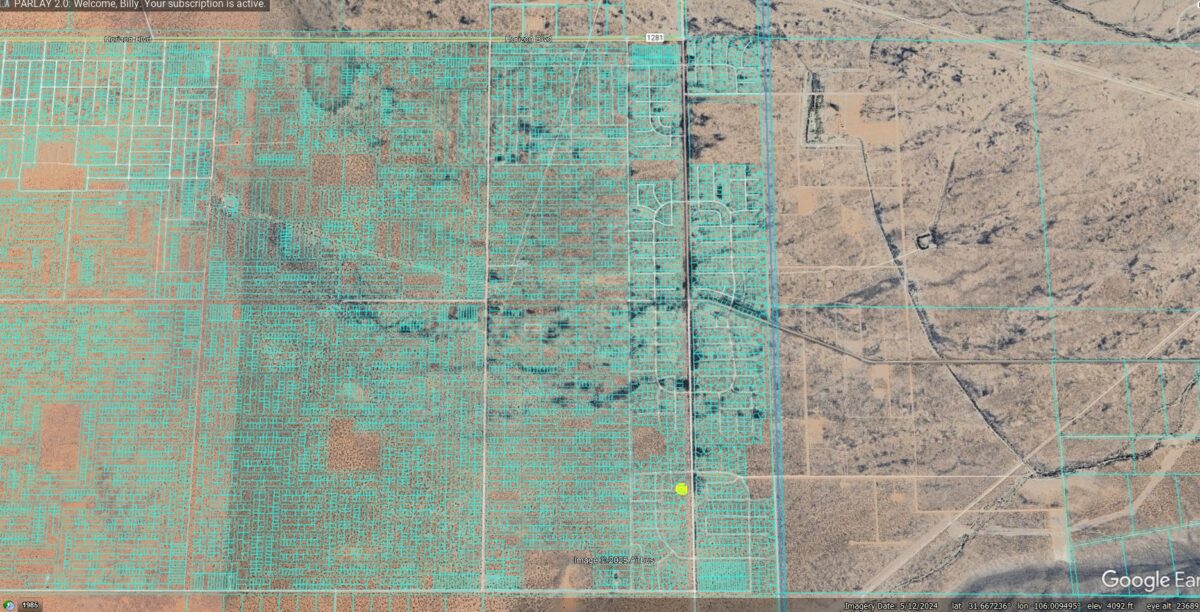 NorthWest Corner:  31°39’33.41″N,106° 0’1.94″W