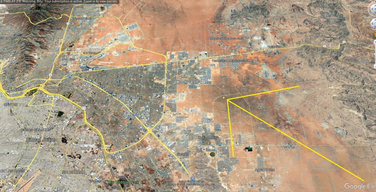 NorthEast Corner: 31°44’54.59″N,106°10’59.68″W