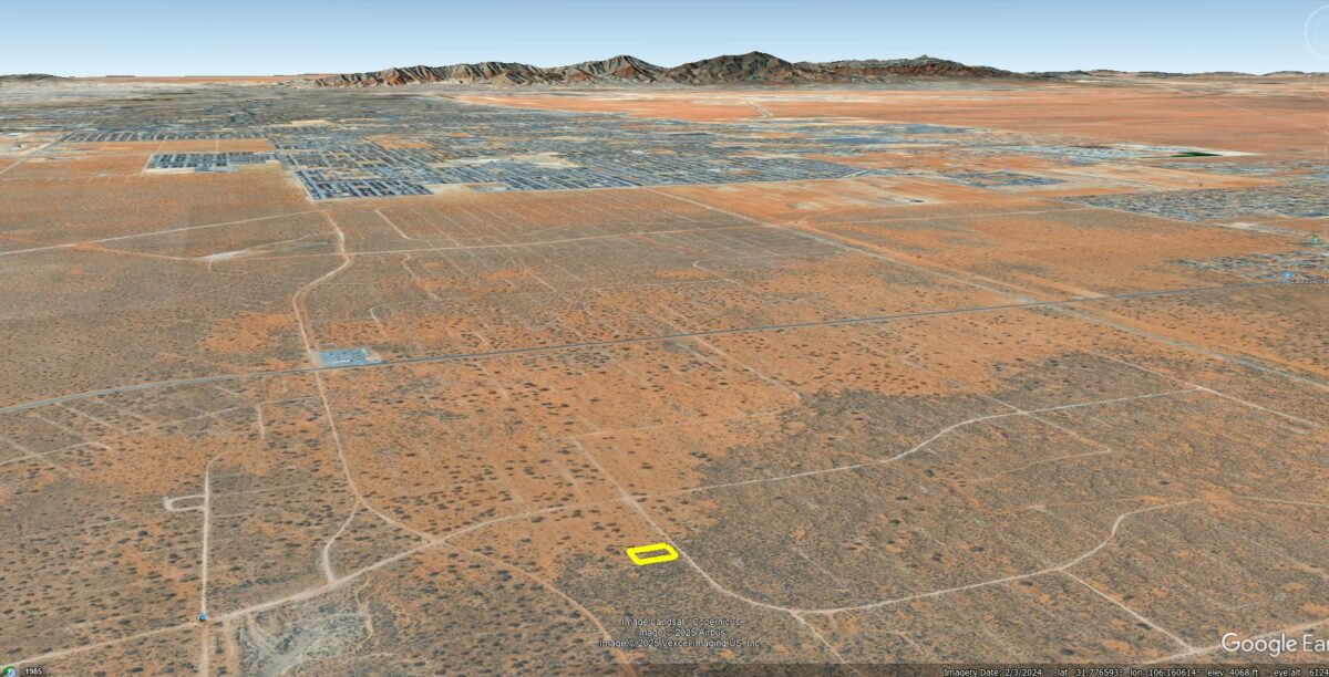 SouthWest Corner: 31°46’12.51″N,106° 9’12.36″W
