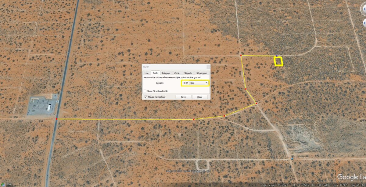 NorthEast Corner: 31°46’14.14″N,106° 9’10.99″W