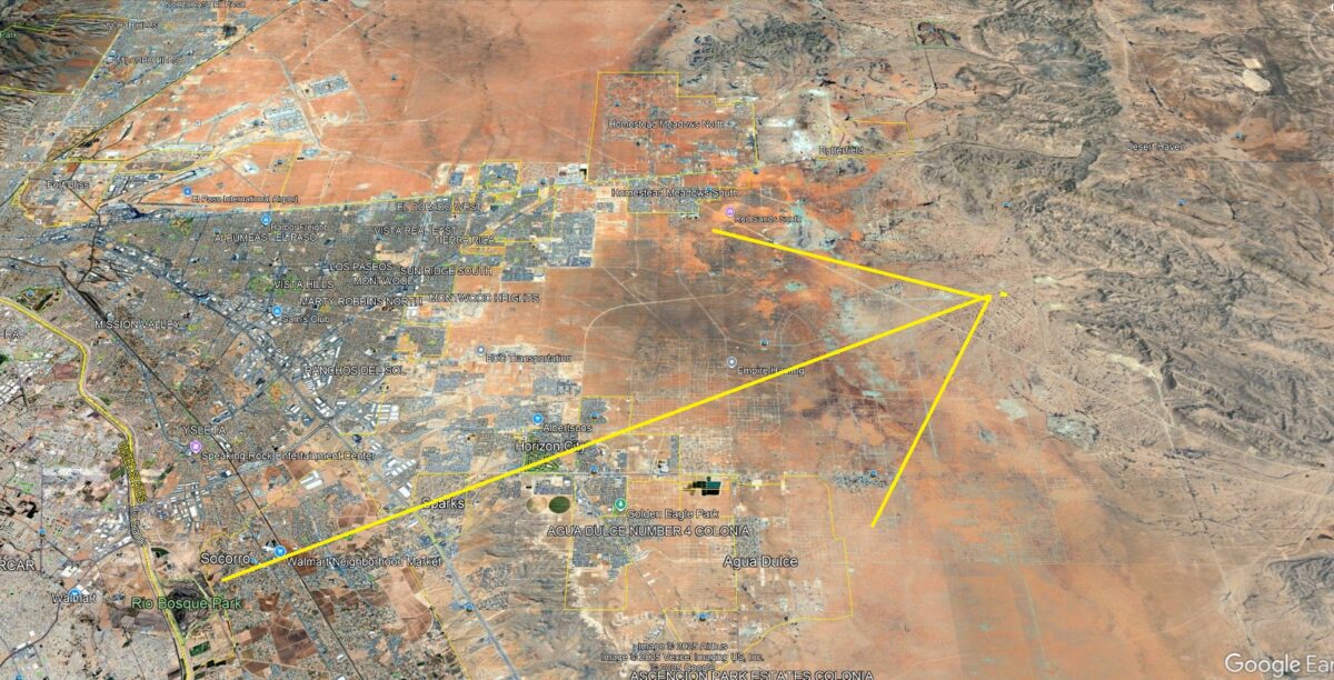 NorthEast Corner: 31°45’25.49″N,106° 2’33.00″W
