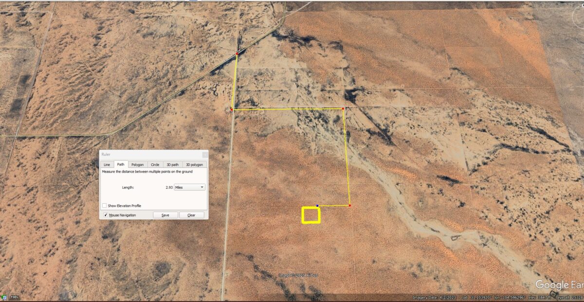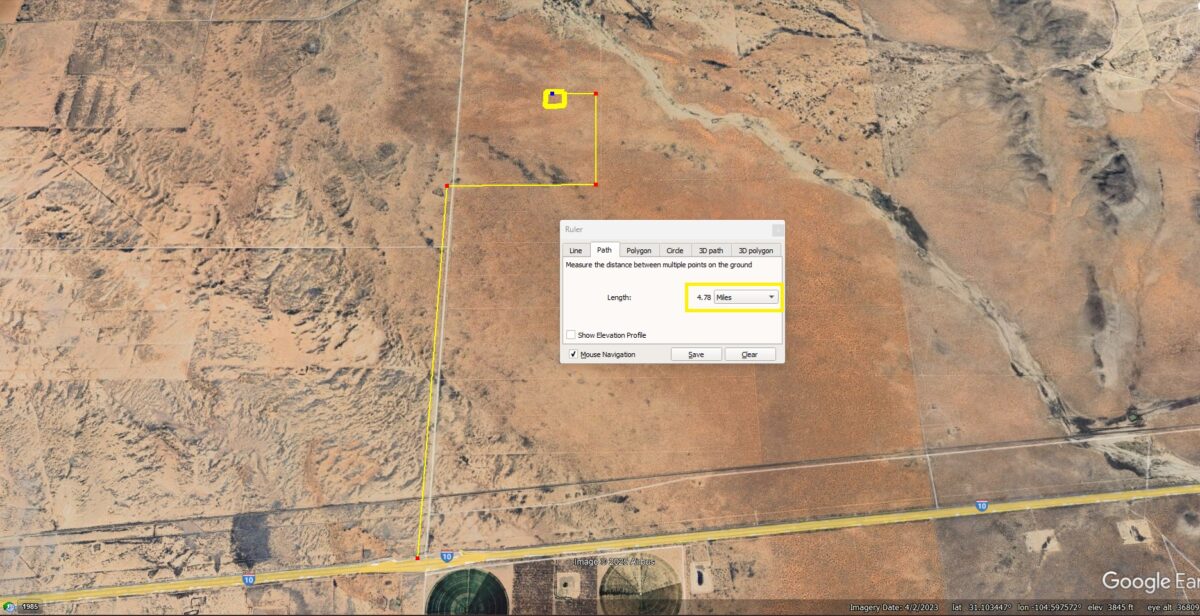 NorthEast Corner:  31° 6’13.26″N,104°35’45.87″W